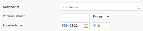 För att kunna registrera ett samordningsnummer måste nationalitet Svensk väljas under fliken Personuppgifter.