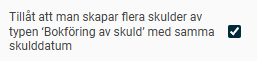 För att kunna skapa flera skulder för samma period behöver du först aktivera en inställning.