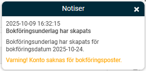 När du skapar ett bokföringsunderlag kan du få en varning i en notis om att ett konto saknas. Här guidar vi dig i hur du hittar vilken löneart det gäller och hur du åtgärdar det.