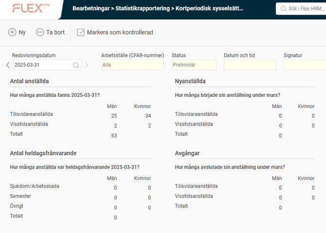 Det första steget i rapporteringen är att skapa ett underlag för datumets rapportering. Detta gör du genom att klicka på knappen Ny i knappraden.