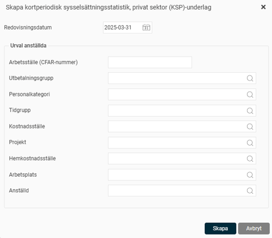 Kortperiodisk sysselsättningsstatistik, privat sektor (KSP) - Hur tar jag fram statistik för KSP i HRM Payroll?