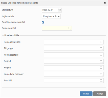 • Skapa underlag för semesterårsskiftet