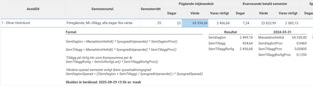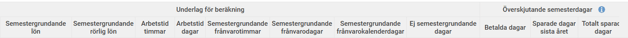 När du scrollar till höger i underlaget ser du alla de parametrar som ligger till grund för semesterberäkningen.