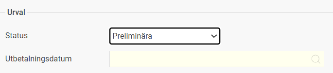 • Du kan välja att skicka preliminära lönespecifikationer genom att välja Status Preliminära.