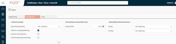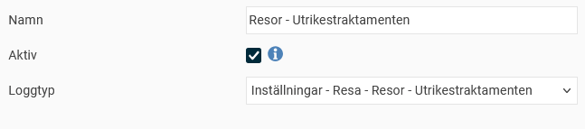 För att aktivera loggning av utrikestraktamenten skapar du en logginställning av typen Resor - Utrikestraktamenten. Denna loggar dels ändringar på normalbelopp för utrikestraktamenten under Systemregister - Utrikestraktamenten, dels ändringar som görs per företag på skattepliktiga utrikestraktamenten under Inställningar - Resa - Resor - Utrikestraktamenten.