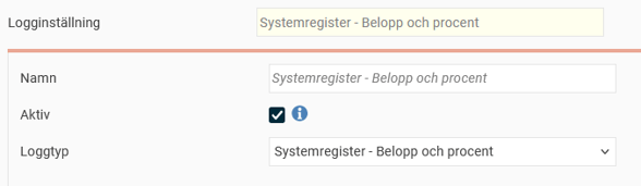 För att aktivera loggning av belopp och procent skapar du en logginställning av typen Systemregister - Belopp och procent.