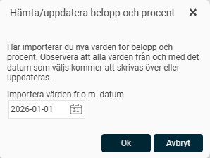 Flex HRM föreslår ett fr.o.m.-datum för hämtning. Klicka på Ok för att hämta in nya värden.