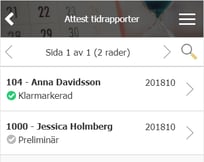 Klicka på en rad för att se detaljposter om tidrapporten och för att attestera eller avslå.