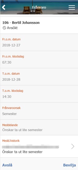 Du kan även registrera frånvaro på en annan anställd via Flex Mobile.