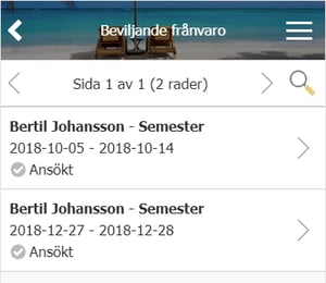 En lista över alla frånvaroansökningar visas, klicka på den du vill behandla.