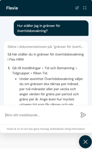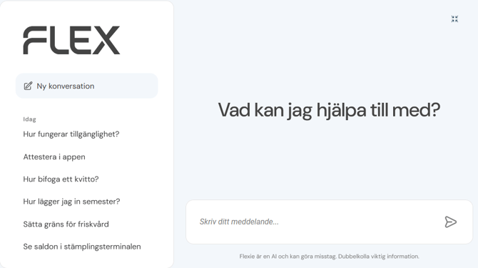 Flexie är Flex HRMs AI-chatbot som ger dig snabba svar på dina frågor och guidar dig rätt i systemet.