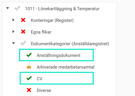 Nedan får HR-blanketter kopplade till kategorierna "Anställningsdokument" och "CV" hämtas ut. Finns det HR-blanketter kopplade till kategorin "Diverse", kan denna roll inte hämta ut dessa blanketter.