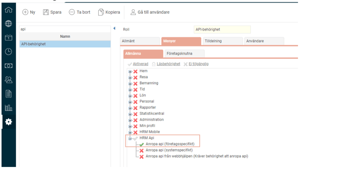 - Skapa en integrationsanvändare för just Winningtemp i HRM med behörighet till HRM Api och meddela Winningtemp användarnamn och lösenord: