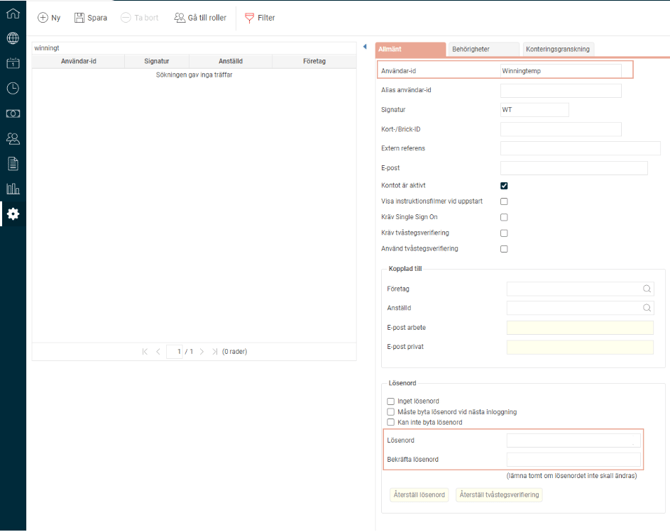 Gå till Allmänt > Företag och aktivera licens för Winningtemp på aktuellt företag. Se fliken Licens.