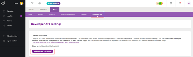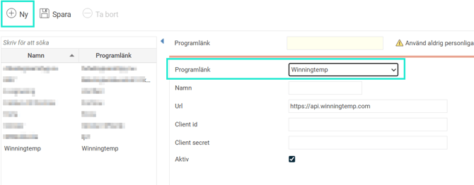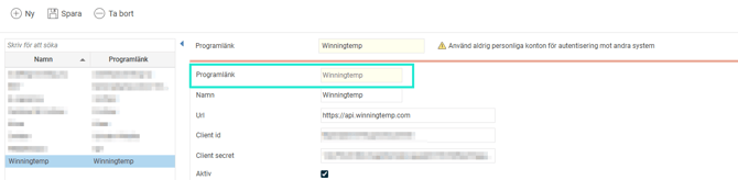 För att HRM ska kunna hämta data från Winningtemp behöver du hämta rätt Client id och Client Secret.