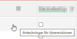 Anteckningar: Anteckningar är endast synliga i lönerevisionen och fungerar som en dialog mellan de som arbetar med lönesättningen. Du kan bara redigera och ta bort dina egna anteckningar.