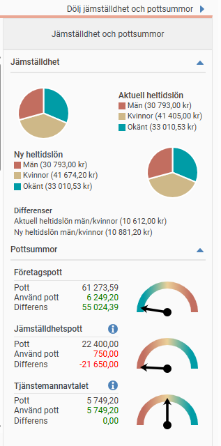 Här kan man se hur stor del av potten man nyttjat för de anställda som visas i listan.