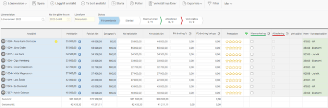 Vald lönerevision laddas in och du ser nu de anställda