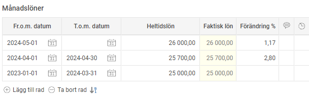 Vita kolumner: Redigerbara fält. Här matar du in den nya lönen.