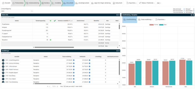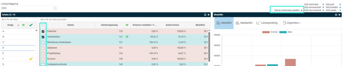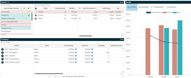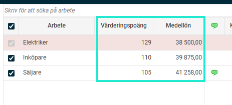 I exemplet nedan kan vi se att Elektriker har lägre medellön än Inköpare trots att Inköpare har lägre värderingspoäng än Elektiker.