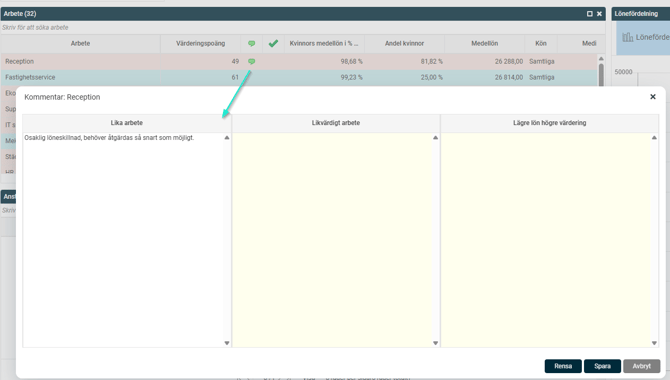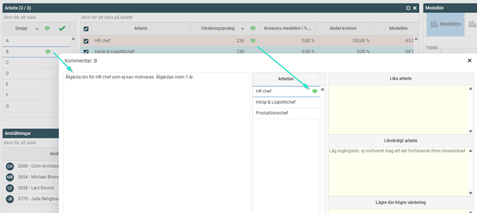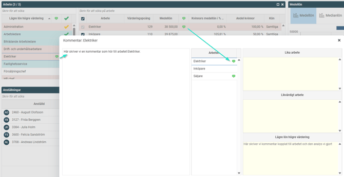 Du kan även skriva en kommentar för Elektiker i samband med analysen av lägre lön högre värdering. Du ser även respektive arbetes kommentarer från samtliga tre analysvyer samlat på ett ställe.