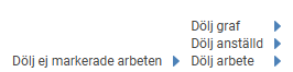 Dölja/Visa graf/anställd/arbete Du döljer eller visar en graf, anställd eller ett arbete genom att använda valen längst upp till höger i vyn