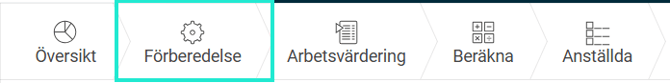 Inställningar som görs under Förberedelser ligger till grund för hela lönekartläggningen och kopieras även med till nästa lönekartläggning som du skapar. Varje lönekartläggnings inställningar kan ändå redigeras så länge detta steg inte är klarmarkerat. Det påverkar inte andra redan skapade lönekartläggningar utan enbart den du just arbetar med.