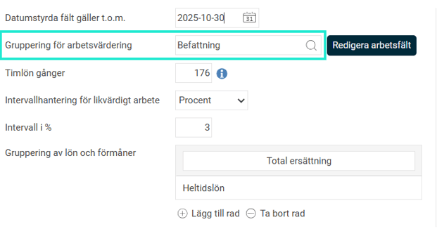 ⚠️OBS! Detta alternativ kommer att tas bort i Flex HRMs nya version av Lönekartläggning som släpps under 2026. Vi rekommenderar därför att redan nu fundera på ert arbetsflöde och se över er struktur av befattningar inför 2026.
