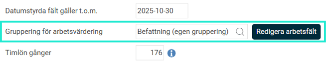 När du valt grupperingen Befattning (egen gruppering) likt bilden ovan så klickar du på Redigera arbetsfält för att skapa era arbeten/grupper.