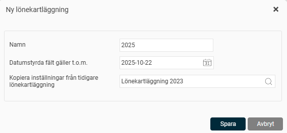 Bestäm t.o.m. vilket datum de datumstyrda fälten som t.ex. löner och lönetillägg minst ska gälla till. Har du ett fält som börjar gälla efter valt datum kommer det inte synas i lönekartläggningen.