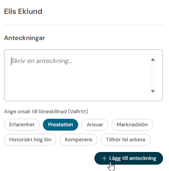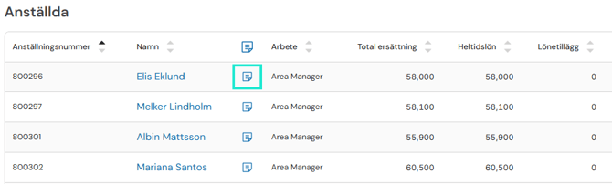 På varje anställd kan du ange en anteckning och ange individuella orsaker till en löneskillnad. Klicka på antecknings-ikonen.