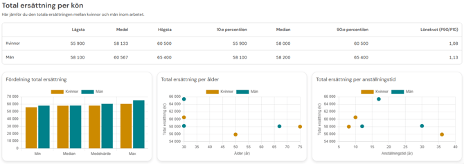I den här vyn jämför du medarbetare som utför samma eller nästan samma arbetsuppgifter. Det är här vi säkerställer att kvinnor och män med samma jobbprofil har en jämställd lönesättning.