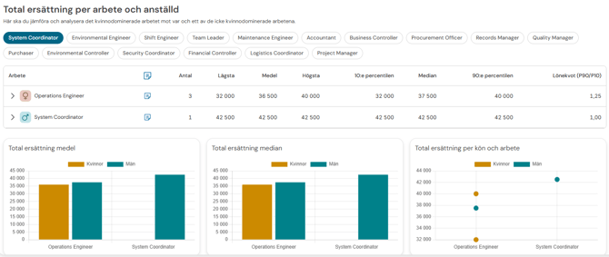 Här nedan ser du hur arbetet Operations Engineer (kvinnodominerat arbete) jämförs med System Coordinator (mansdominerat arbete).