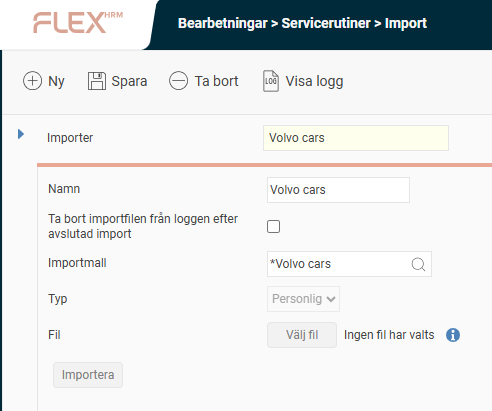 I Flex HRM kan du importera körjournaler från externa leverantörer av elektroniska körjournaler. Importen kan göras antingen från en textfil eller via Flex HRM web-API. Det är också möjligt för dig att importera dina egna bilresor om du har en bil som automatiskt kan registrera körjournaler till en text- eller CSV-fil.