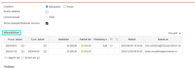 Under menyn Lön anges uppgifter om den anställdes lön, så som månadslön, bankuppgifter m.m.