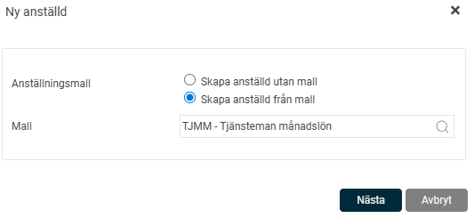 Du kan även välja att skapa den anställde utifrån en anställningsmall.