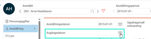 När en anställd ska sluta behöver ett avgångsdatum läggas in.