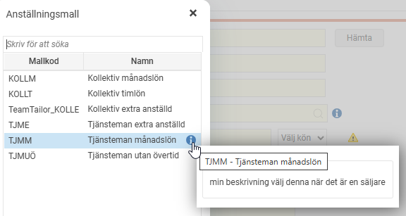 Klicka på Ny anställd och välj lämplig anställningsmall för den aktuella medarbetaren.