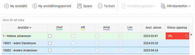Nu syns den anställde i listvyn Anställda > Nyanställning.