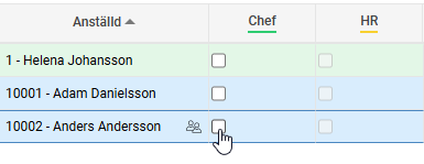Bra att veta! Hittar du inte den anställde i listan? Ta hjälp av din systemadministratör som då behöver lägga upp den nya perioden för den anställde för att du ska få behörighet till den anställde.