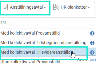 Har du behörighet att hämta ett anställningsavtal syns ikonen Anställningsavtal.