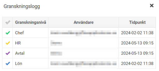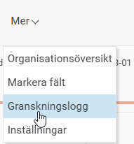 I anställdaregistret får man information om vem som utfört granskningen samt tidpunkt för detta via Mer – Granskningslogg