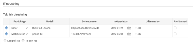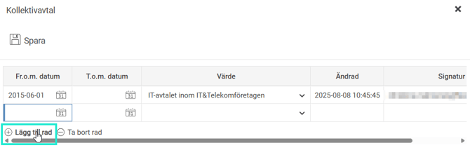 Lägg till värden i tabellen genom att klicka på +Lägg till rad