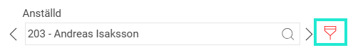 För att navigera mellan olika medarbetare, sök upp den anställde genom att skriva i rutan Anställd, klicka på förstoringsglaset eller hoppa till nästa anställd via pilarna.