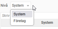 Här väljer du om inställningarna ska gälla för hela systemet eller för ett specifikt företag. Välj mellan alternativen System och Företag.