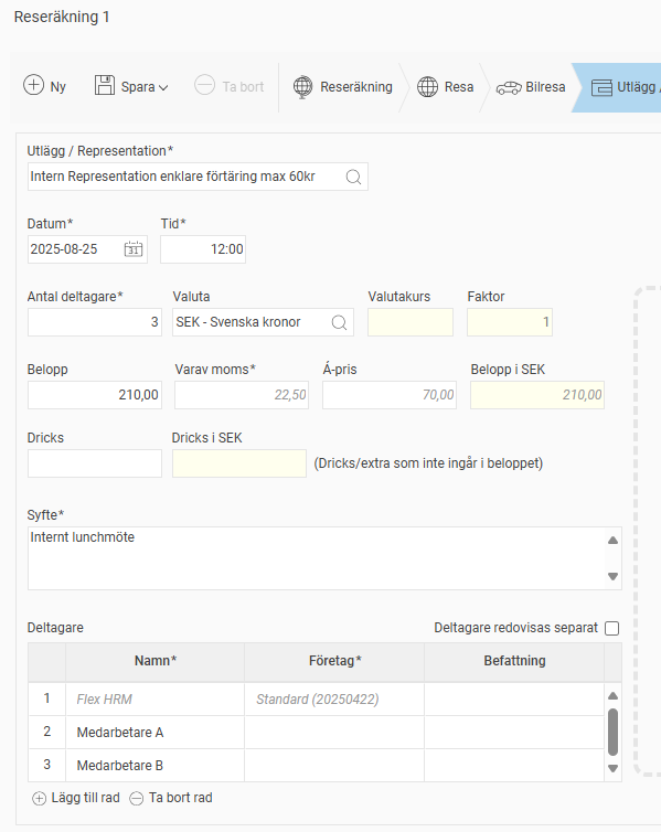 Hur rapporterar jag utlägg och representation i HRM Travel?