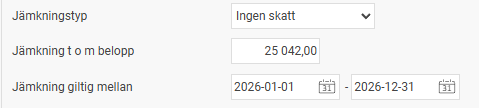 Ange under vilken period som jämkningen ska gälla i fälten Jämkning giltig mellan.