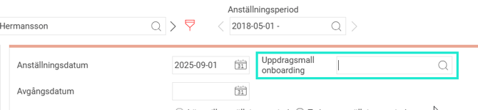 Koppla rätt uppdragsmall bredvid anställningsdatum i rutan för Uppdragsmall Onboarding