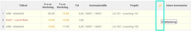 De användare som är behöriga att delattestera kan nu göra det per tidrad i tidrapporten: