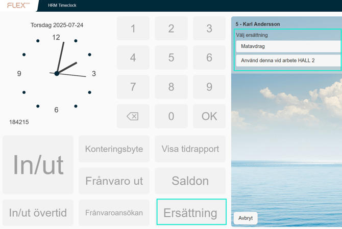 Det går att ställa in en knapp i stämpelklockan för en specifik ersättningskod, istället för att användarna ska välja kod. Det gör du med hjälp av funktionen Direktval i stämpelklocksinställningen. Kom ihåg att namnge knappen så att det är tydligt vad den gör.